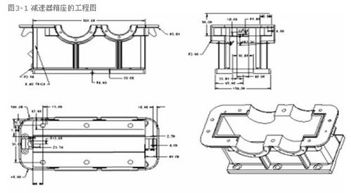 對(duì)于減速器箱座的工程圖,一般情況下需繪制各個(gè)零件的平面視圖,部件裝配體的平面視圖,總裝配體的平面視圖。這里僅以箱座零件圖作為示例,給出它的示例如圖3-1所示。